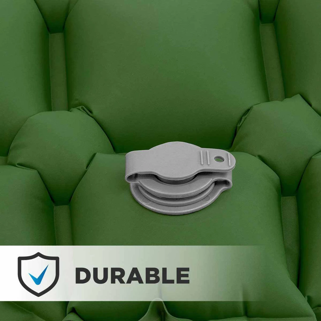 - DESIGN: The sleeping pad comes in three colors – green, blue, and khaki. Just choose the design you like and hit the road!