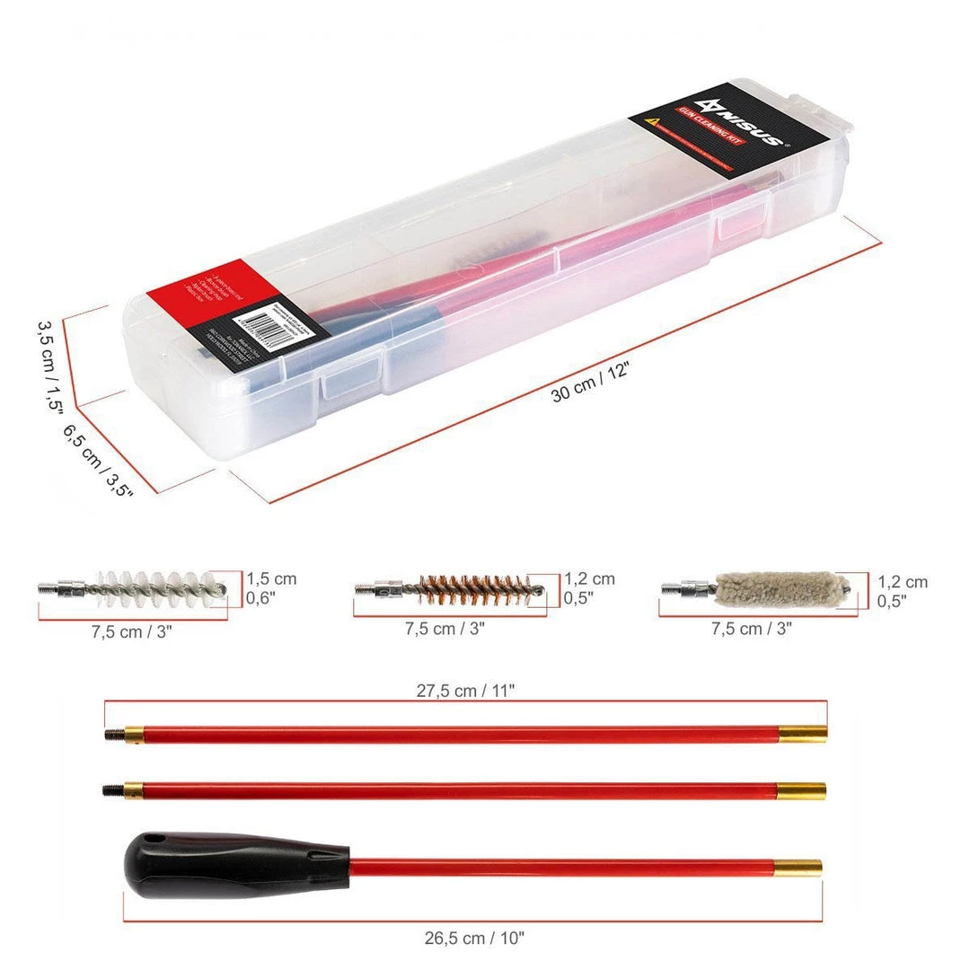 Cleaning Kit has all the necessary tools to keep your guns clean. Forget about big cases that you have to leave at home. This kit is portable that allows using it both at home or during hunting wherever you are.