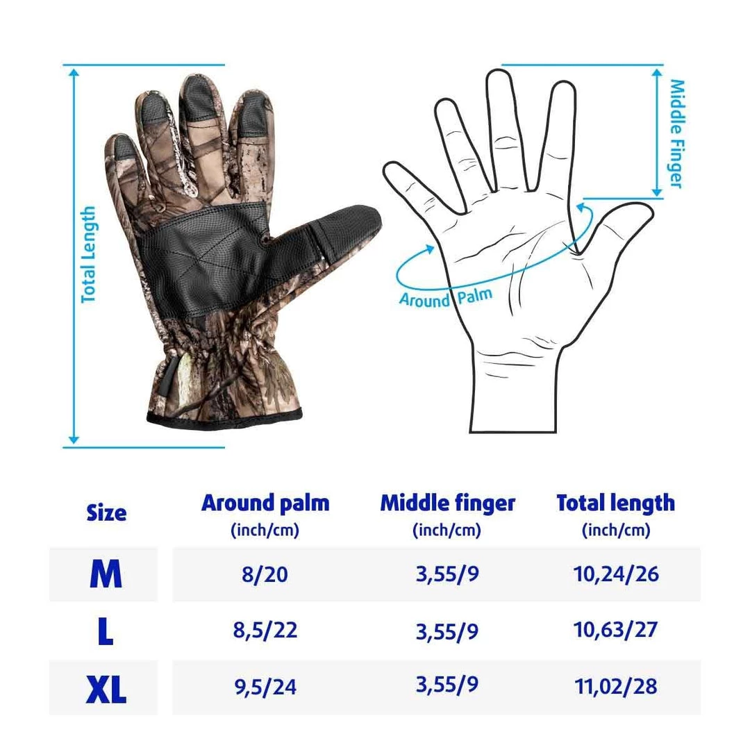 SIZE: The camo gloves are available in M, L, and XL sizes.