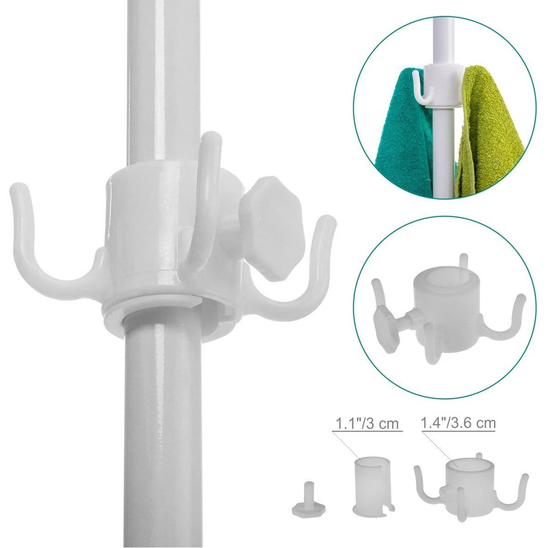 Four durable plastic hooks will endure wet cloth and let it dry faster. Â Â Just hang your things there and enjoy a pleasant time on the beach, avoiding having your belongings wet, dirty, sandy, or sun-blazed. Â