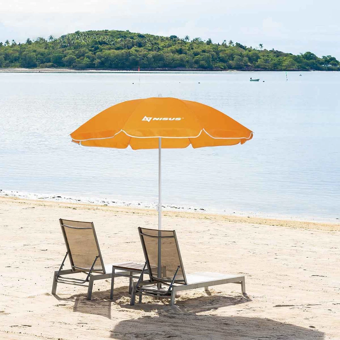 - CHOICE OF SIZE – NISUS folding beach umbrellas are made for the bright outdoor life with bright colors and multiple sizes so that you can pick what fits your needs. Outdoor shade umbrellas come in an eye-catching orange color to brighten your afternoon. The color makes it easier to spot it from the sea, so you are not lost in a crowd. Â
