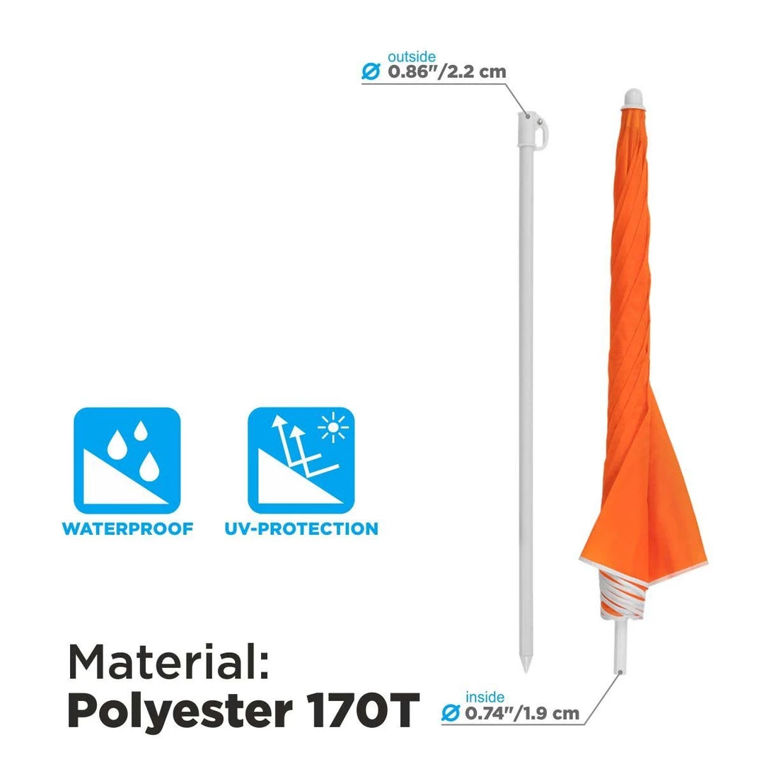 - QUALITY MATERIALS – The NISUS sun beach umbrella is made of 170T polyester fabric and a water coating that makes it waterproof and fade resistant. The fabric can last for years as it gives you relaxation outdoors or at the beach. It has a secure push button that makes it easy to set up the canopy of the outdoor umbrella.