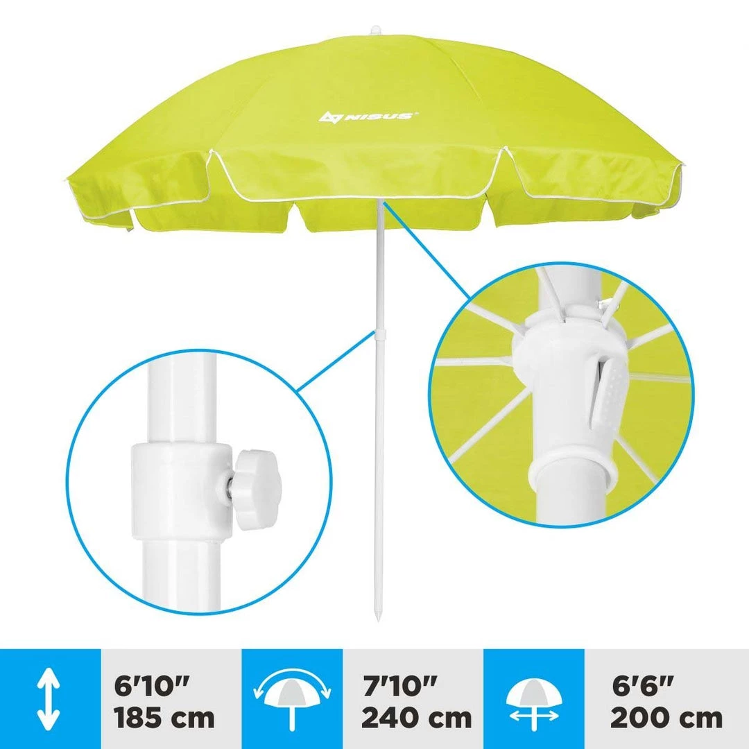 - CHOICE OF SIZE – The NISUS beach outdoor umbrellas are made for the bright outdoor life with bright colors and multiple sizes so that you can pick what fits your needs. The pool umbrellas come in an eye-catching lime color to brighten your afternoon. The color makes it easier to spot it from the sea, so you are not lost in a crowd. Â