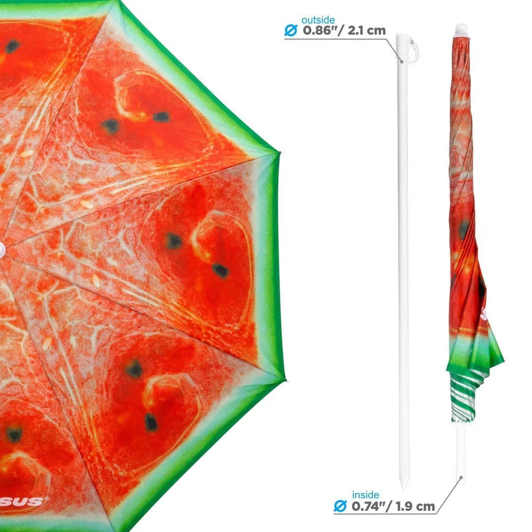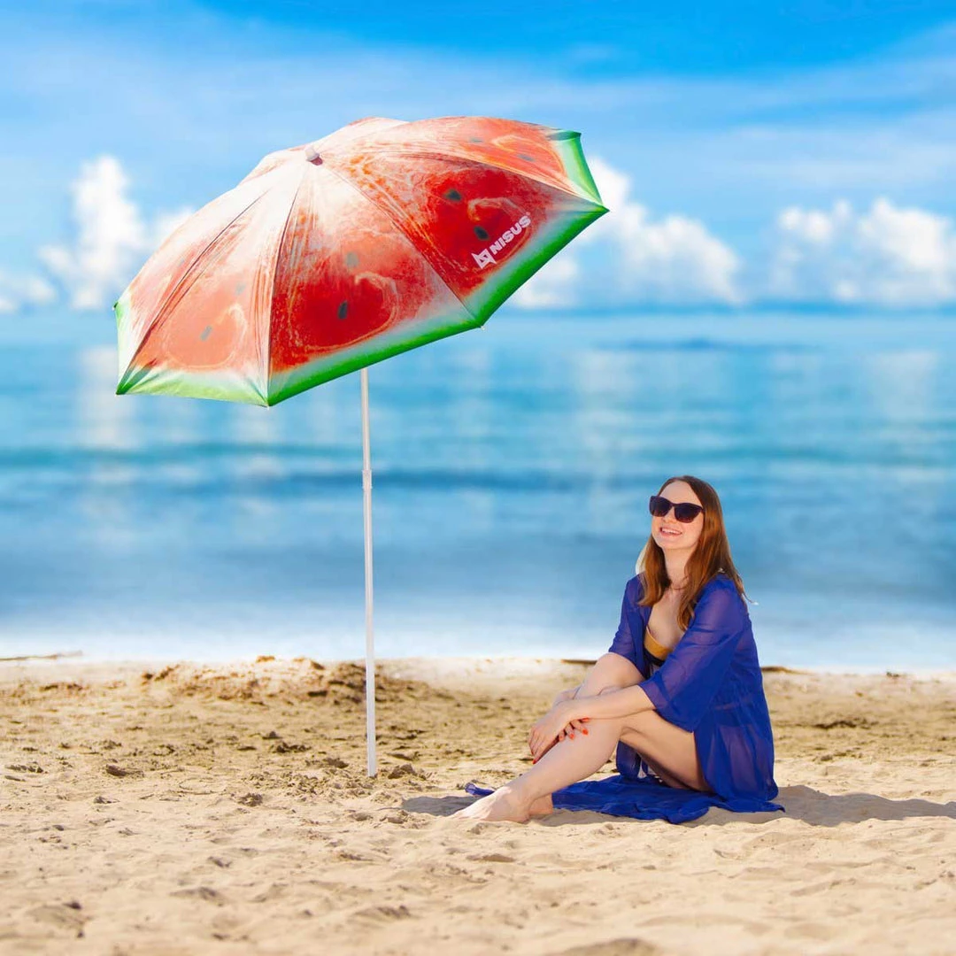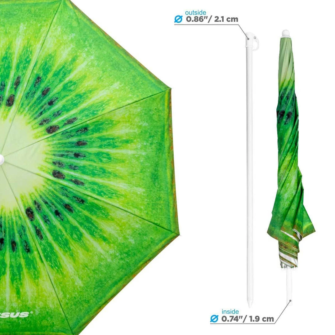 - COLOR AND SIZE – The NISUS folding beach umbrella with tilt is made for the bright outdoor life with bright fruit colors and convenient size. These fruit colors make this umbrella charming and easily visible from the sea so that you won’t get lost in the crowd of people. The 4.7 ft umbrella canopy in diameter is a convenient and practical size of the umbrella, which will allow you to hide in the heat of the summer sun.