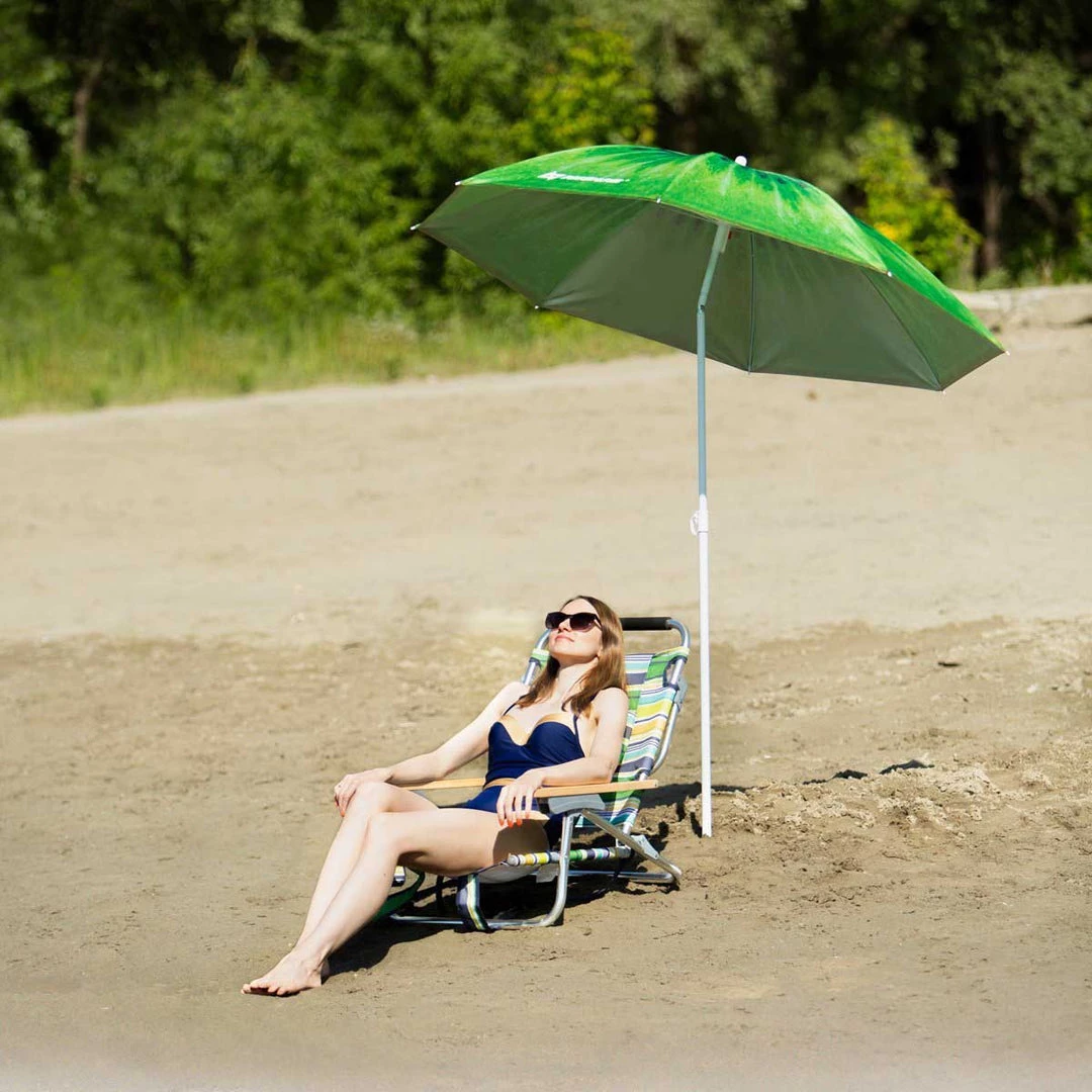 - QUALITY MATERIALS – NISUS 4 ‘7 ft beach umbrella is made of 170T polyester fabric with silver lining and a water coating that makes it waterproof and fade resistant. It means that your umbrella will last you for many years, pleasing you with the multiple colors of juicy orange, fresh watermelon, and vivid kiwi. It has a secure push button that makes it easy to set up the outdoor umbrella canopy. The 4.7 ft tilt mechanism allows you to adjust the NISUS outdoor umbrella as your heart desires. You will be able to enjoy the coolness of the shade even on a sultry hot day.
