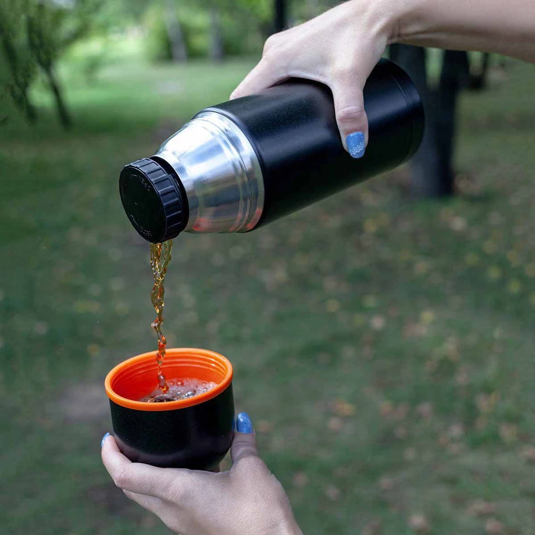 Save nature, get rid of disposable plastic cups, and start taking your favorite beverages with you using the vacuum bottle. It has a durable stainless steel double wall made with  vacuum insulation technology, which preserves heat for 12 hours and cold for 24 hours. Lightweight and compact design make this bottle a perfect accessory for any winter and summer activities, fishing, skating, skiing, cycling. This model is presented in four volumes, so you can choose those which fit your activities best. Â