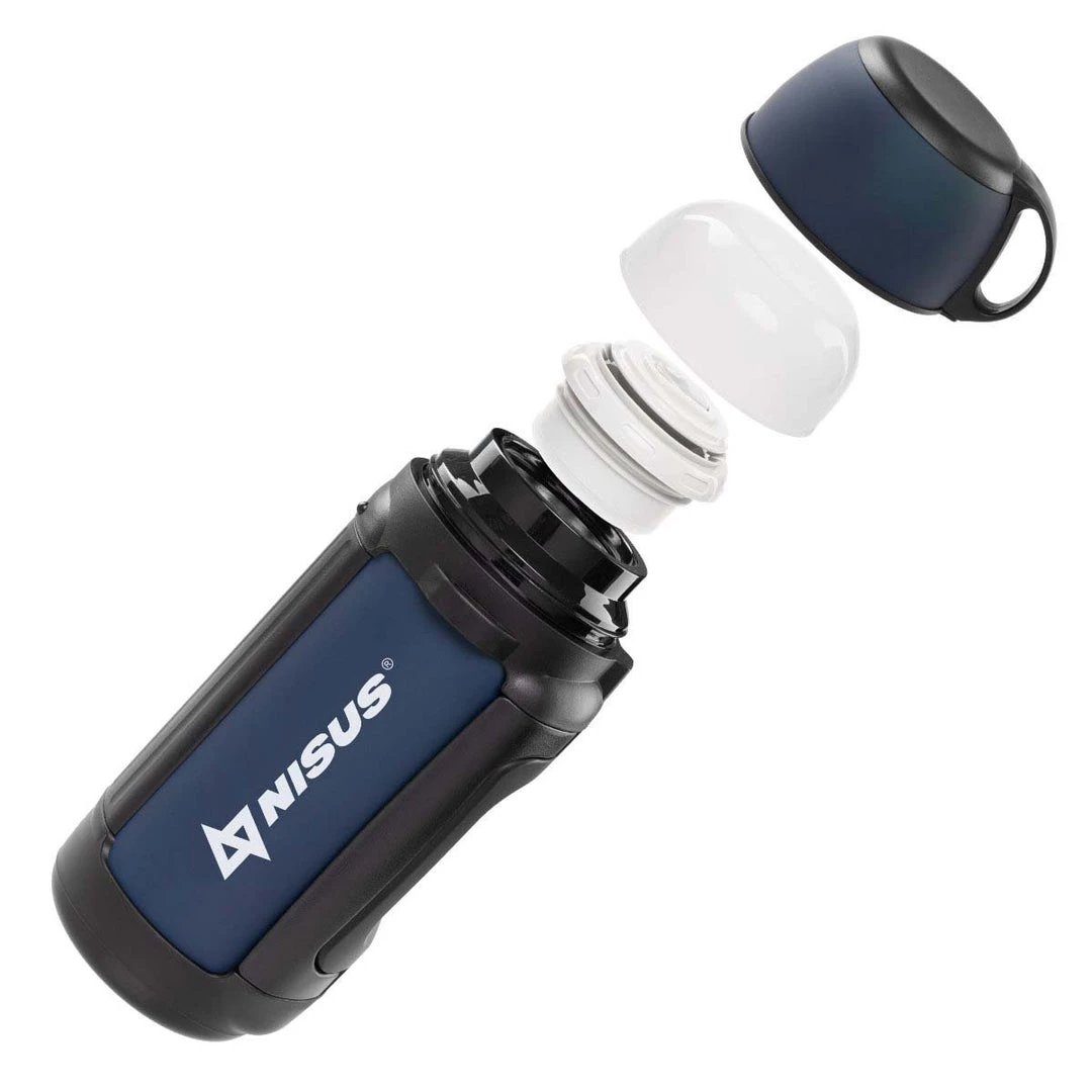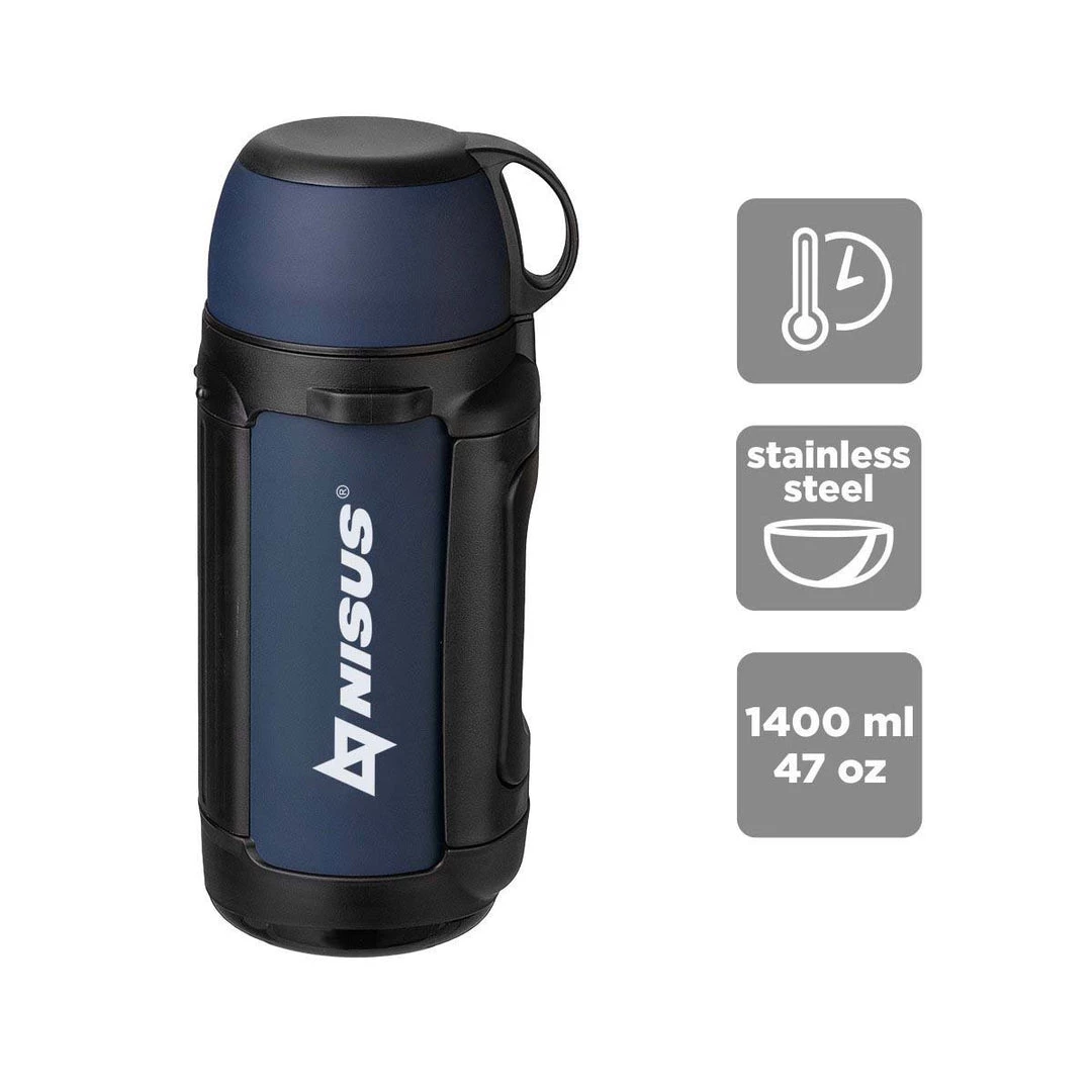The large NISUS vacuum bottle offers a 47 oz capacity for your favorite beverage. This volume is optimal for a full day activity. It will help you stay hydrated for a long time – let it be sports, leisure, or construction work! The special insulation technology will keep your beverage steaming-hot up to 12 hours when you need to warm up on a chilly-cold day. And it will keep your iceberg-cold beverage for up to 24 hours on a hot day to quench your thirst. The bottle can be pre-heated with hot water, prior to filling it with the hot drink of your choice. An additional plastic cup is inside the lid, allows sharing your drink with a friend. The special anti-slip soft-touch coating makes it pleasant to the touch. The NISUS 47 oz vacuum bottle is a must-have accessory for any active person!
