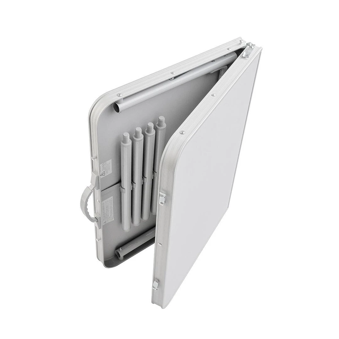 NISUS compact folding outdoor camping table is the perfect addition to your camping gear or your RV garage. Whether camping, backyard BBQ with friends, day at the beach or an RV adventure, this lightweight aluminum folding table is a great choice.