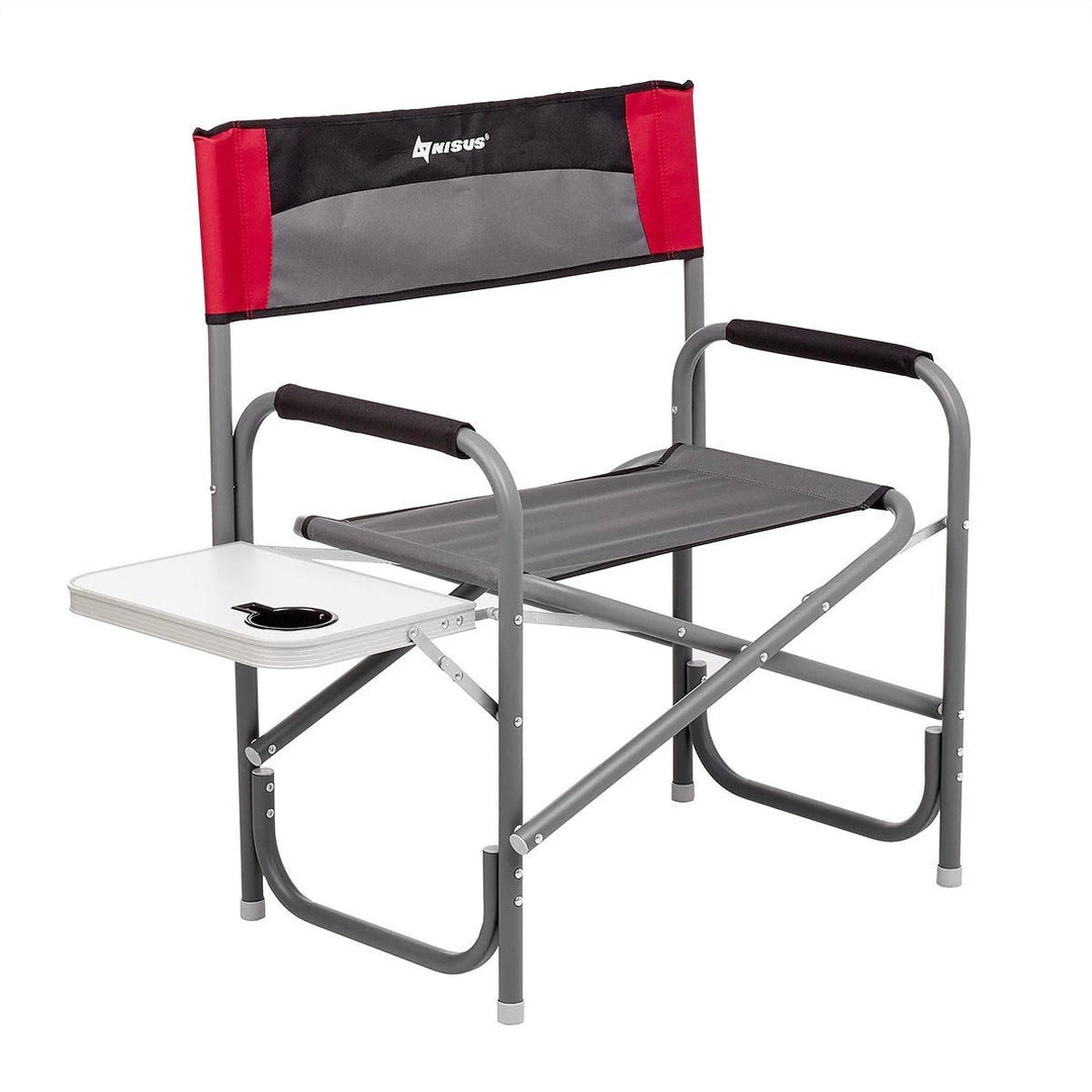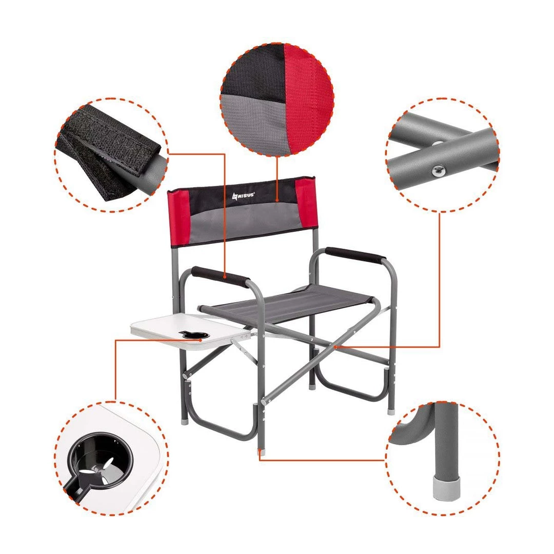 - COMFORTABLE: Ergonomically shaped, the NISUS director’s chair provides you with comfort all day long. The side table allows having all your necessary stuff at hand. Â