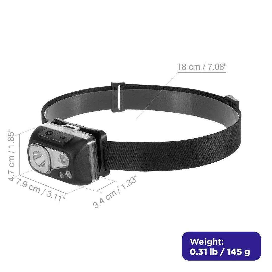 - LIGHTING MODES: The LED headlamp has different lighting modes that can be used depending on the conditions. 5W and 3W LED lamps give 300 lumens, 5W lamp – 220 lumens, 3W – 100 lumens. The headlamp can light the way for up to 328 ft.