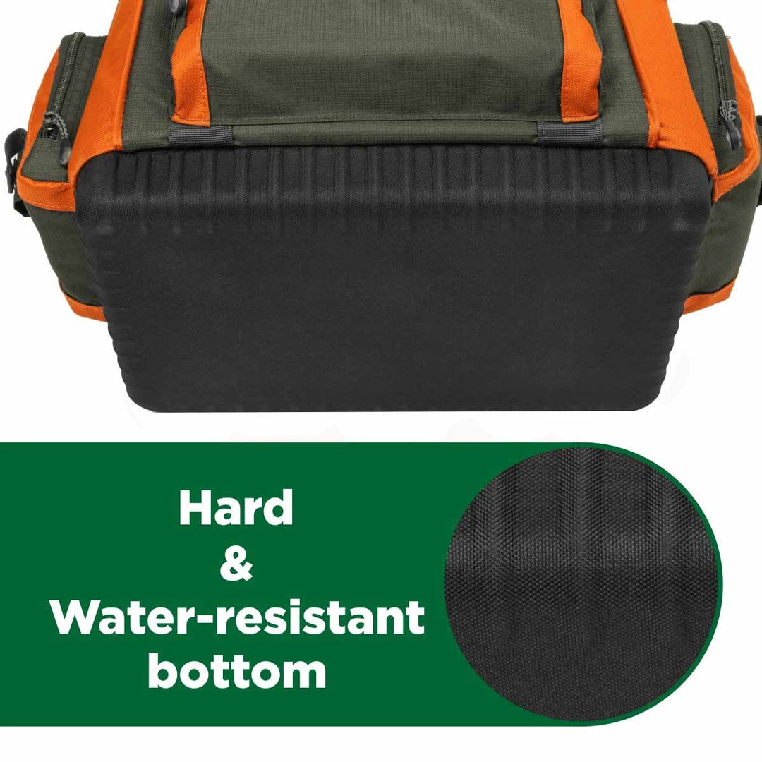 - QUALITY: Made of durable 600D Oxford fabric, which is water-resistant and tear-resistant. Don’t worry if sunny weather suddenly changes into a rainy one as the bag’s material will protect your stuff and will not allow your tackle to get wet. Â Â