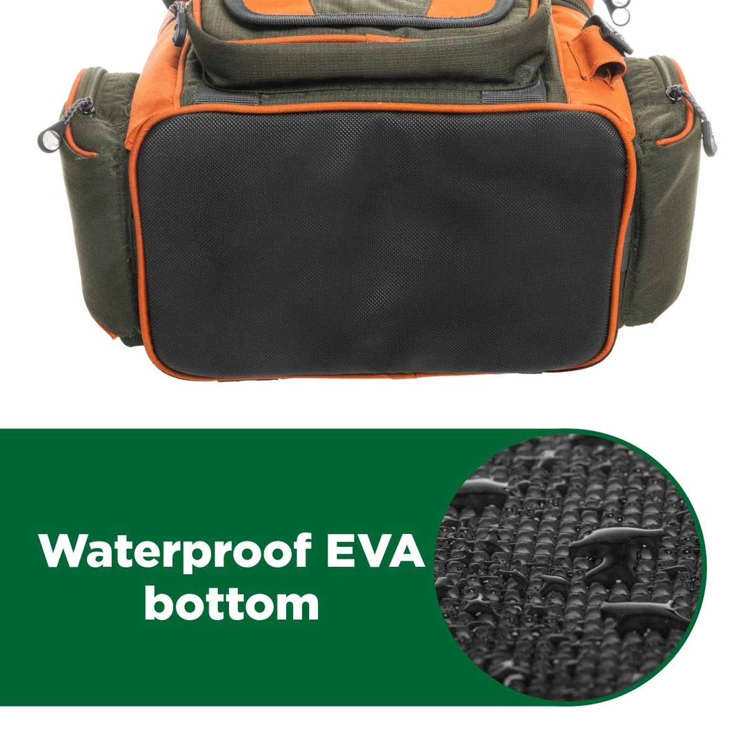 - QUALITY: This tackle bag is made of durable 600D Oxford fabric, which has water-resistant and tear-resistant properties. Don’t worry if sunny weather suddenly changes into a rainy one as the material of the bag will protect your stuff and will not allow your tackle to get wet. Â