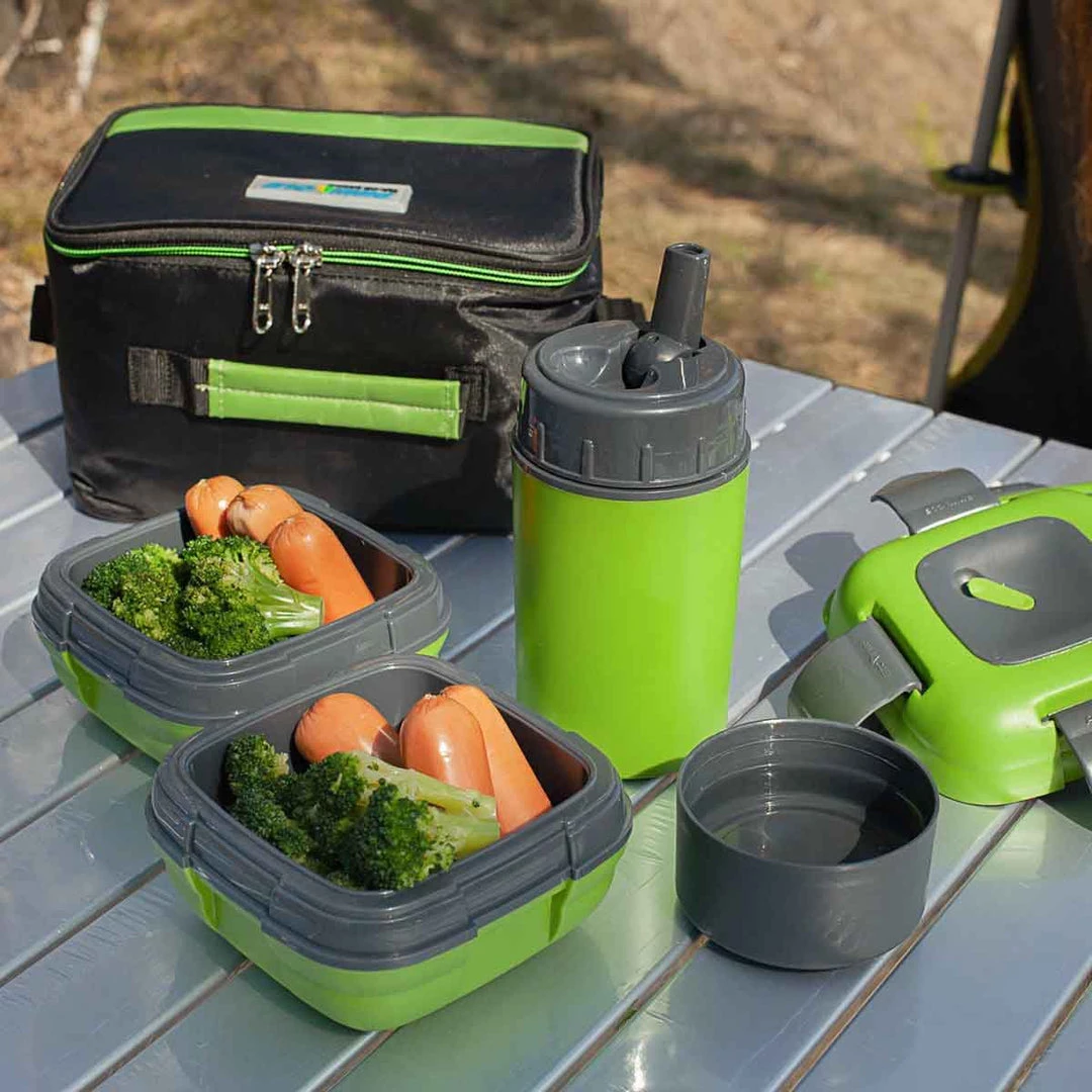 - CONVENIENT: The set of thermal lunch containers is exactly what you need to enjoy your lunch on the go. Â The set features a bag with a strap, which makes it perfect to carry to the office or to take to school or college.